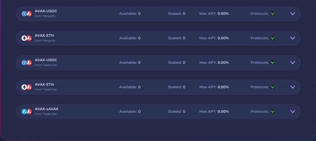 YieldYak’s strategies & pools one can tap into: