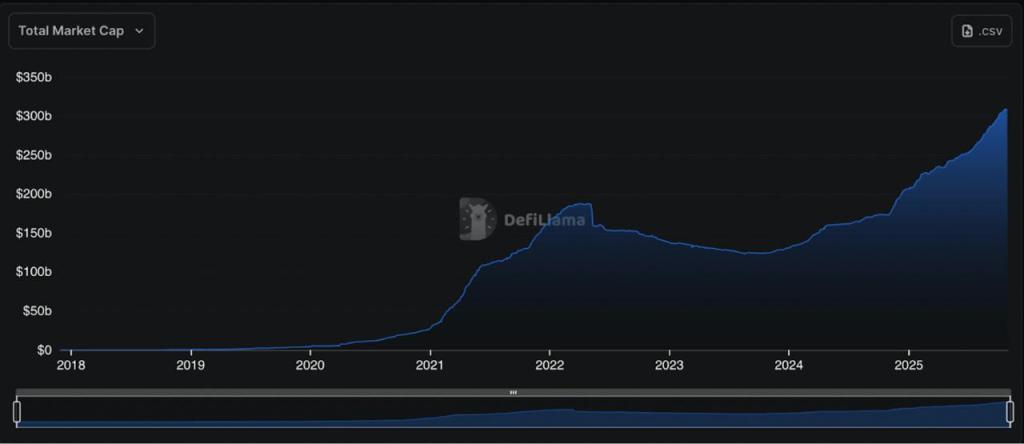 Crypto added more than one hundred billion dollars of stablecoins between January and November 2025, a 50% expansion in under ten months, amounting to $307 billion. Stablecoins are the fastest growing vertical in crypto, and are widely treated as the safest corner of the market. They are the quiet denominator beneath everything else.