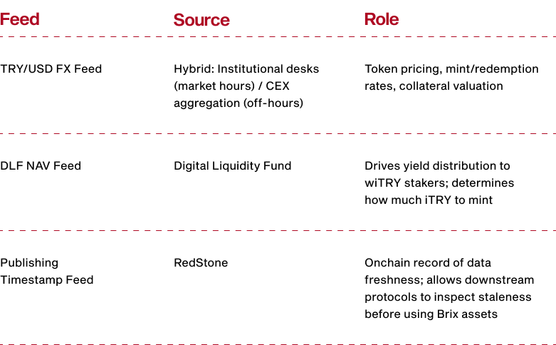 - Peg integrity, since stale or incorrect pricing is the primary mechanism through which the iTRY peg can drift, and continuous feeds directly address that risk
